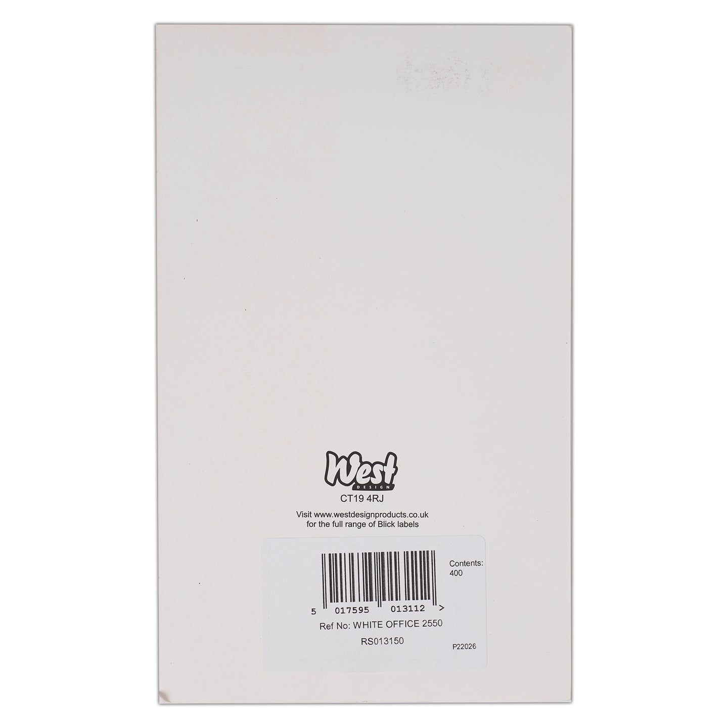 Blick Self Adhesive Stickers Office Pack, 25mm x 50mm, Rectangular, White, 400 Labels