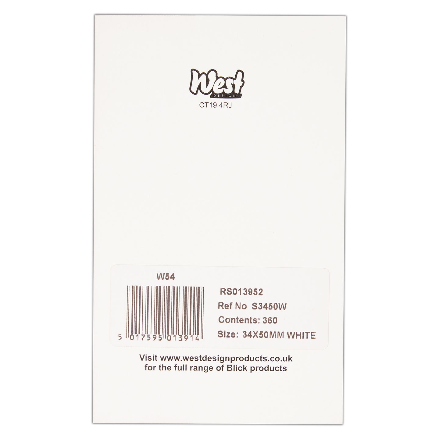 Blick Self Adhesive Stickers Office Pack, 34mm x 50mm, Rectangular, White, 360 Labels