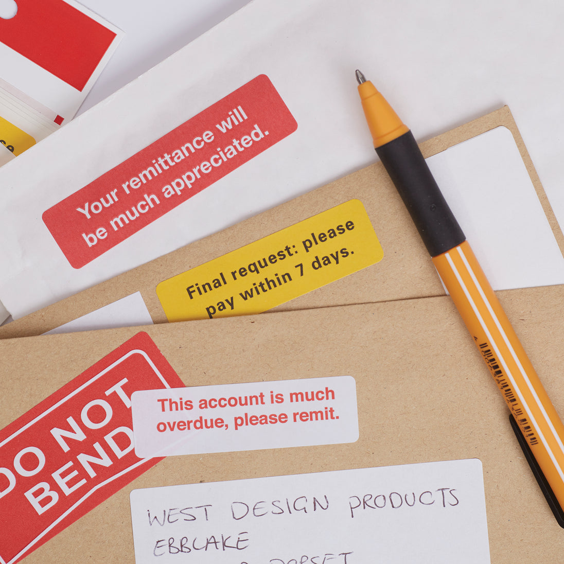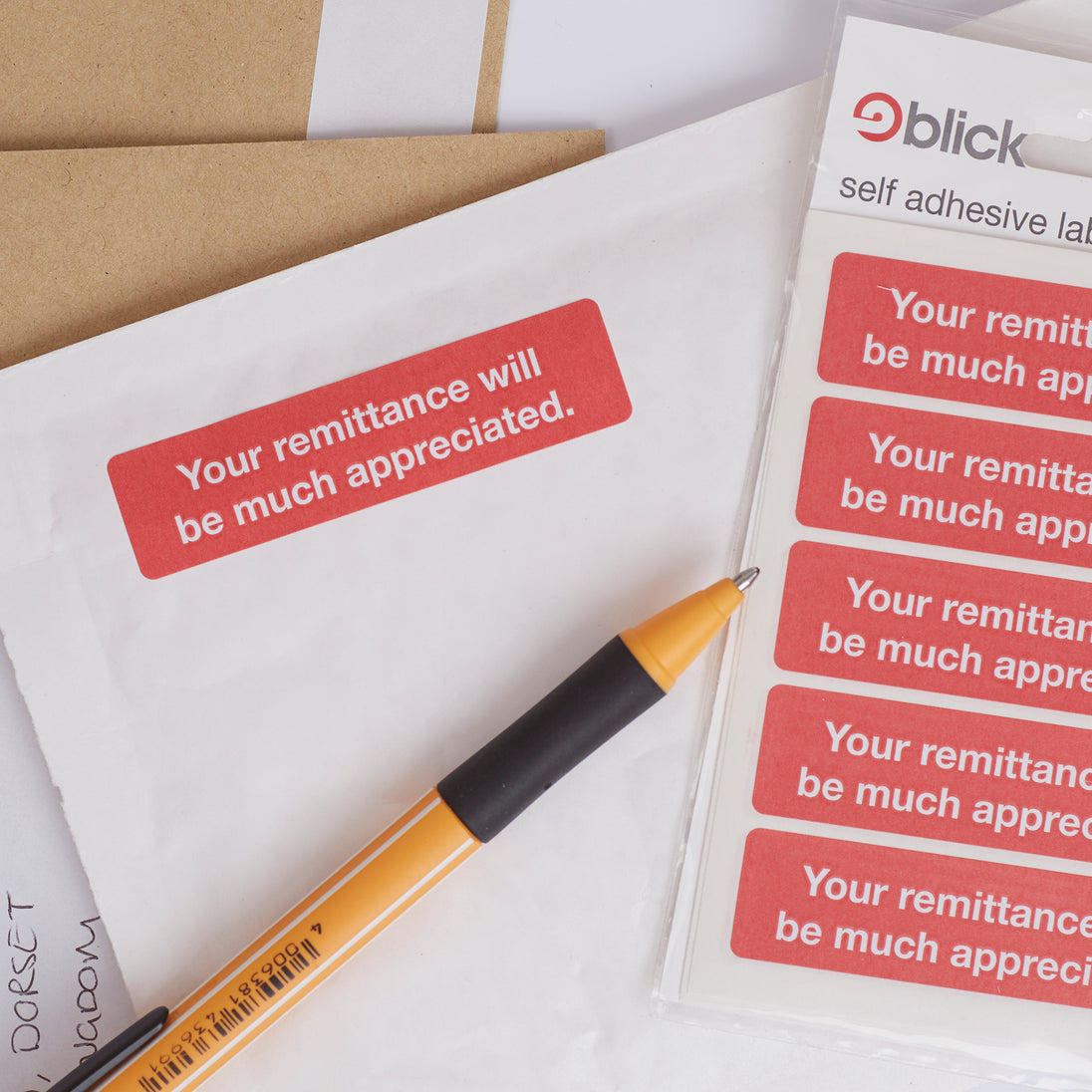 Blick Self Adhesive Stickers, 19mm x 61mm, Account Reminder, Red/White, 35 Labels