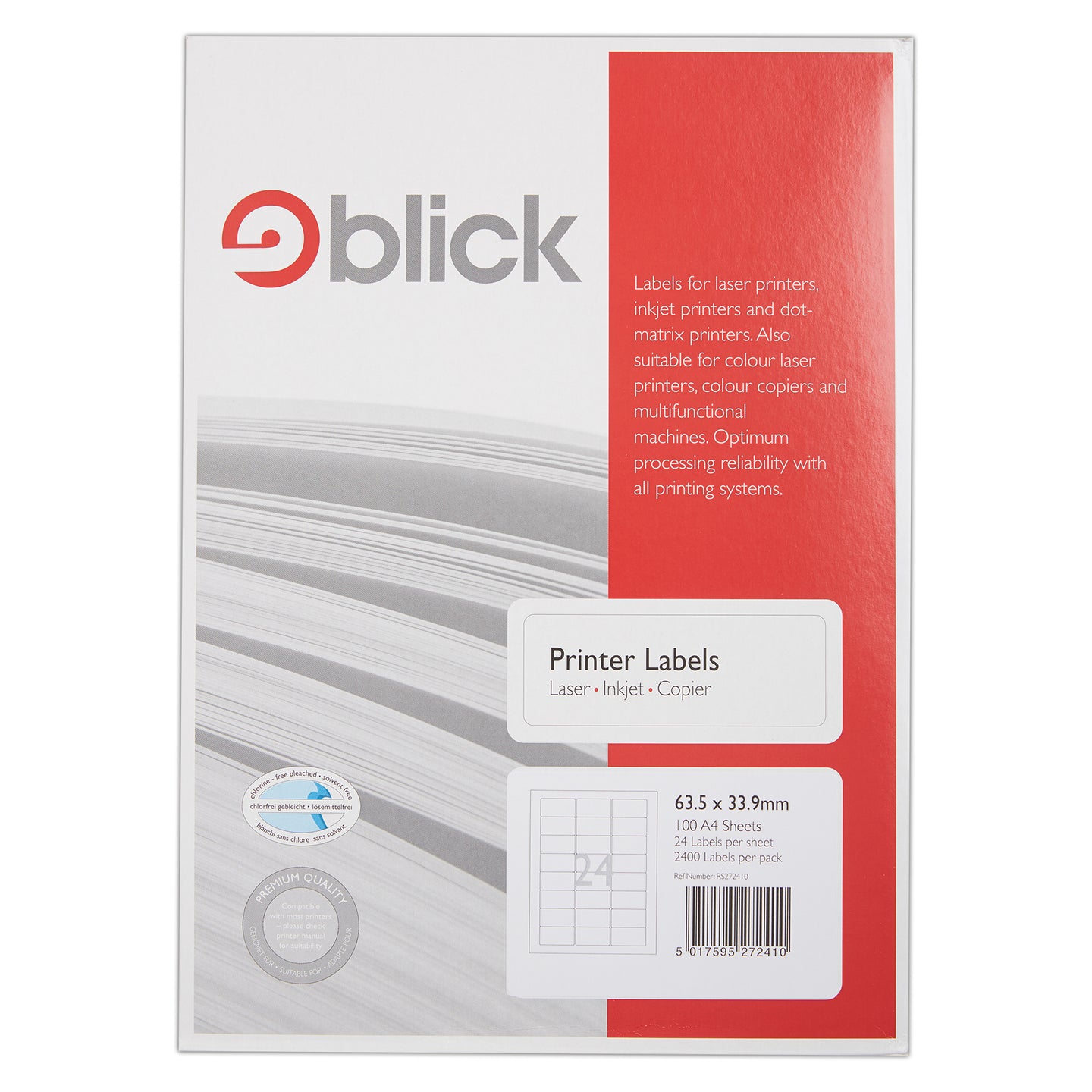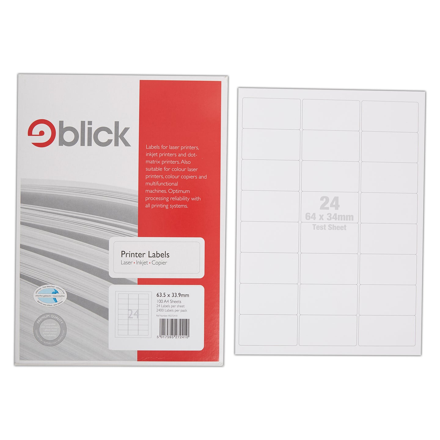 Blick Labels, White, 24 Per Sheet 100 Sheets, Rectangular, 63.4mm x 33.9mm, 2400 Labels, For Home, Office, Family, School