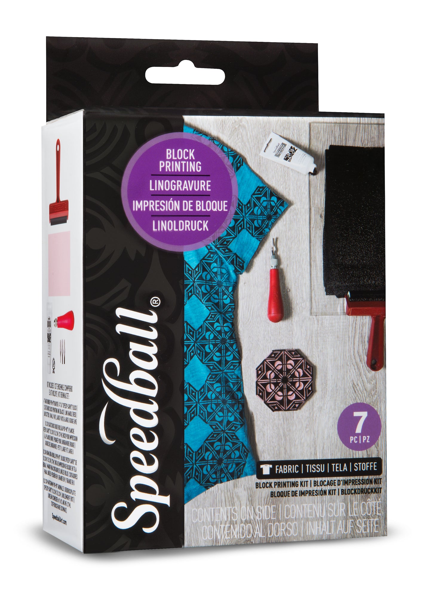 Speedball Block Printing Kit is a must-have for any art and creativity lovers. It includes all the tools and supplies needed, this is a super set for art and craft enthusiasts, whether professional artists, or beginner hobbyists. Includes everything you need to get started in print making and lino cutting. The craft set includes 3"x 4" Speedy-Carve block, 4" hard rubber pop-in brayer, lino handle (red), x3 lino cutters, and 1.25oz fabric block ink (black). Kit arrives with blades stored in the lino handle for your protection.