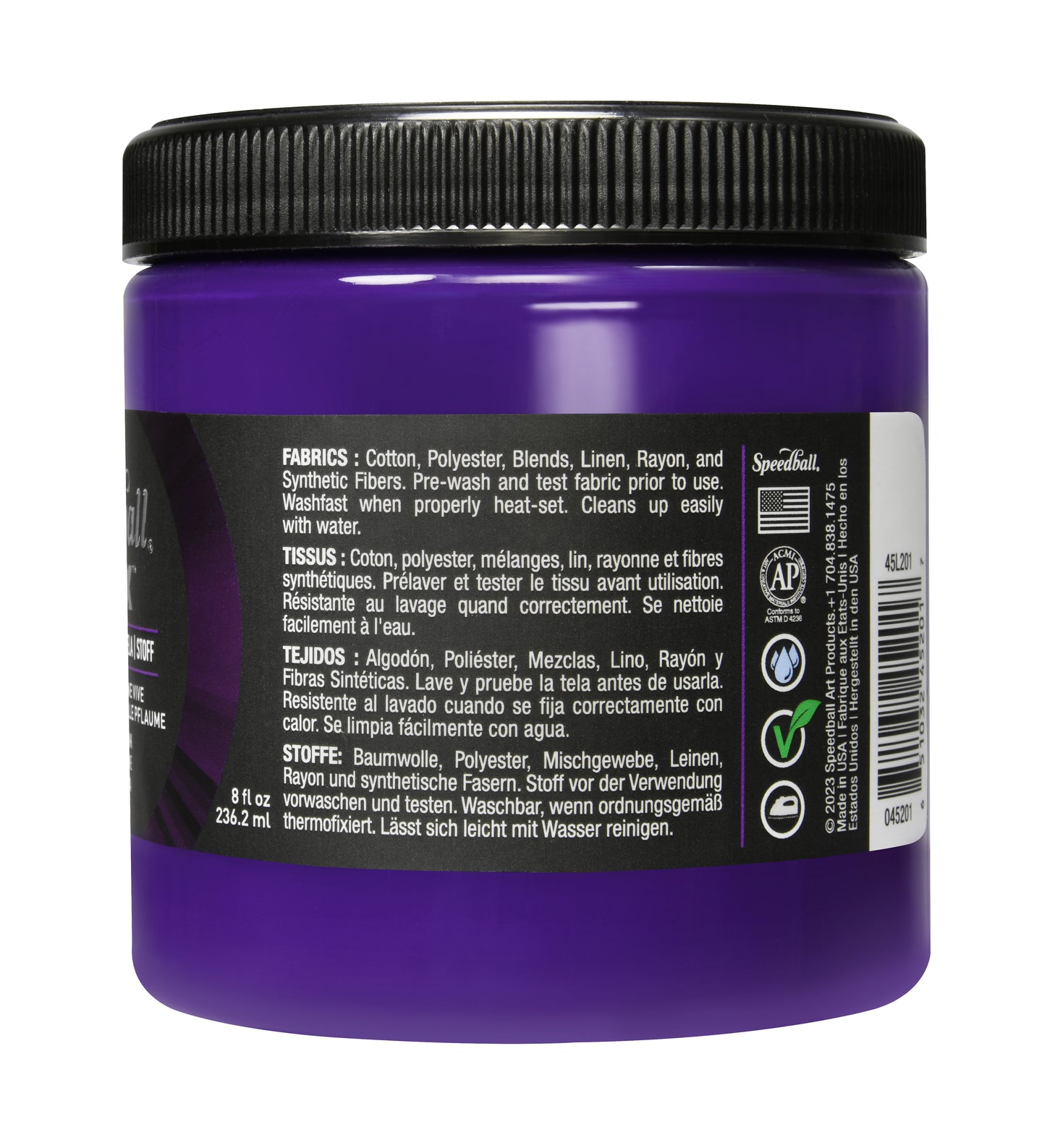 Speedball Flex™ Fabric Screen Printing Ink is an advanced water-based formula ink designed to be flexible across a variety of materials, whether white, light, or dark colour fabric. Ink delivers bold, rich colour and ideal for use on cotton, polyester, rayon, and synthetic fibers while resisting cracking or peeling when fabric is stretched or pulled. Fabric remains soft to the touch. The ink becomes permanent when properly heat set, and will maintain rich, vibrant colour for life of the garment. Create your own unique blend of colour by mixing the Flex ink. Uniquely formulated ink guarantees the highly opaque performance. Available in a variety of colours.