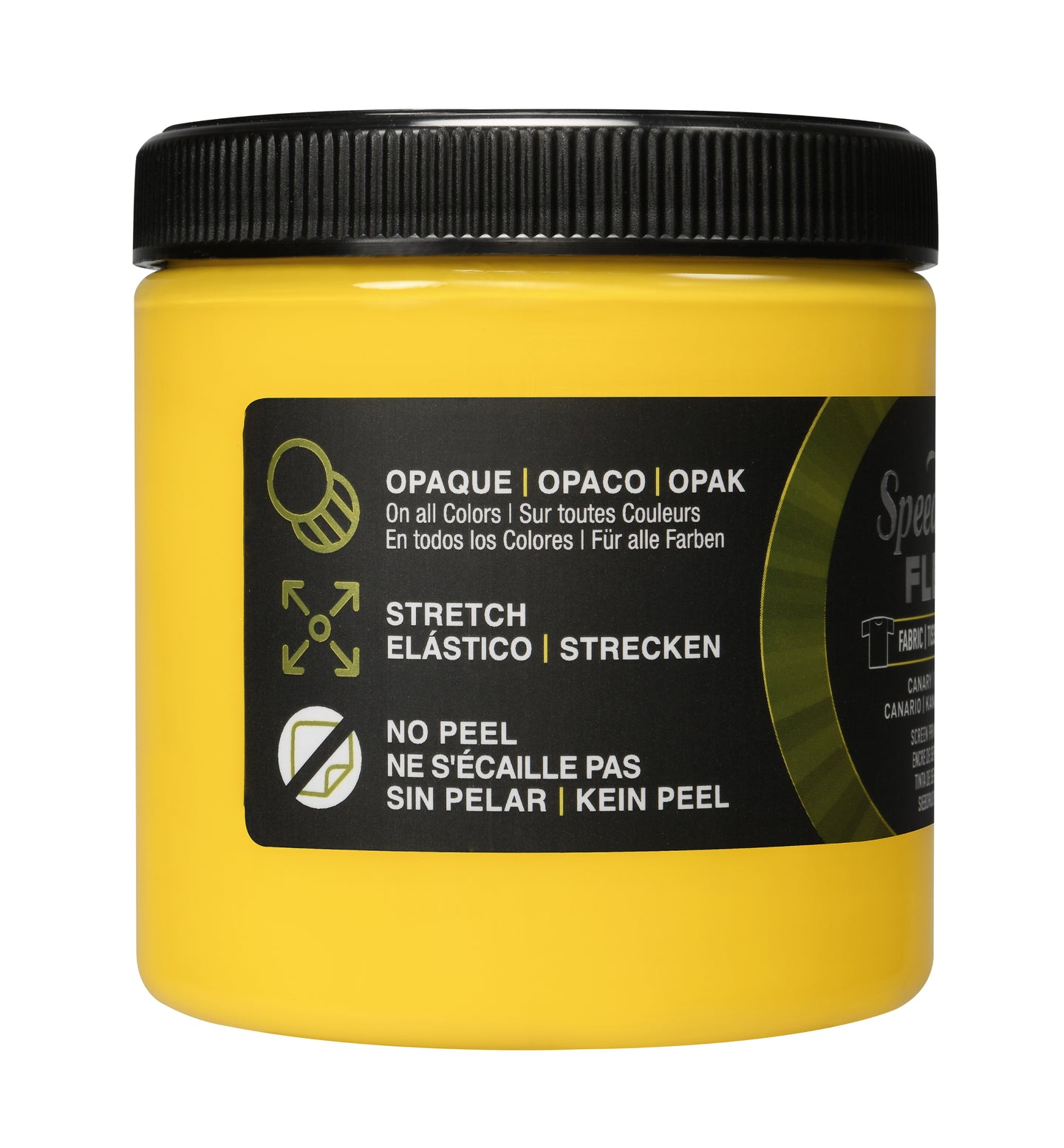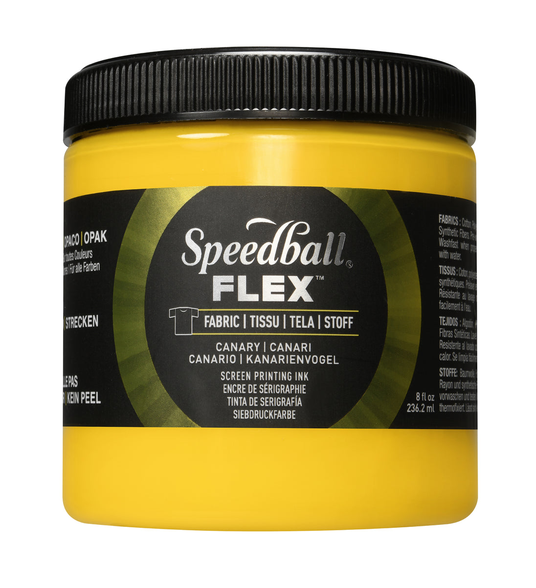 Speedball Flex™ Fabric Screen Printing Ink is an advanced water-based formula ink designed to be flexible across a variety of materials, whether white, light, or dark colour fabric. Ink delivers bold, rich colour and ideal for use on cotton, polyester, rayon, and synthetic fibers while resisting cracking or peeling when fabric is stretched or pulled. Fabric remains soft to the touch. The ink becomes permanent when properly heat set, and will maintain rich, vibrant colour for life of the garment. Create your own unique blend of colour by mixing the Flex ink. Uniquely formulated ink guarantees the highly opaque performance. Available in a variety of colours.