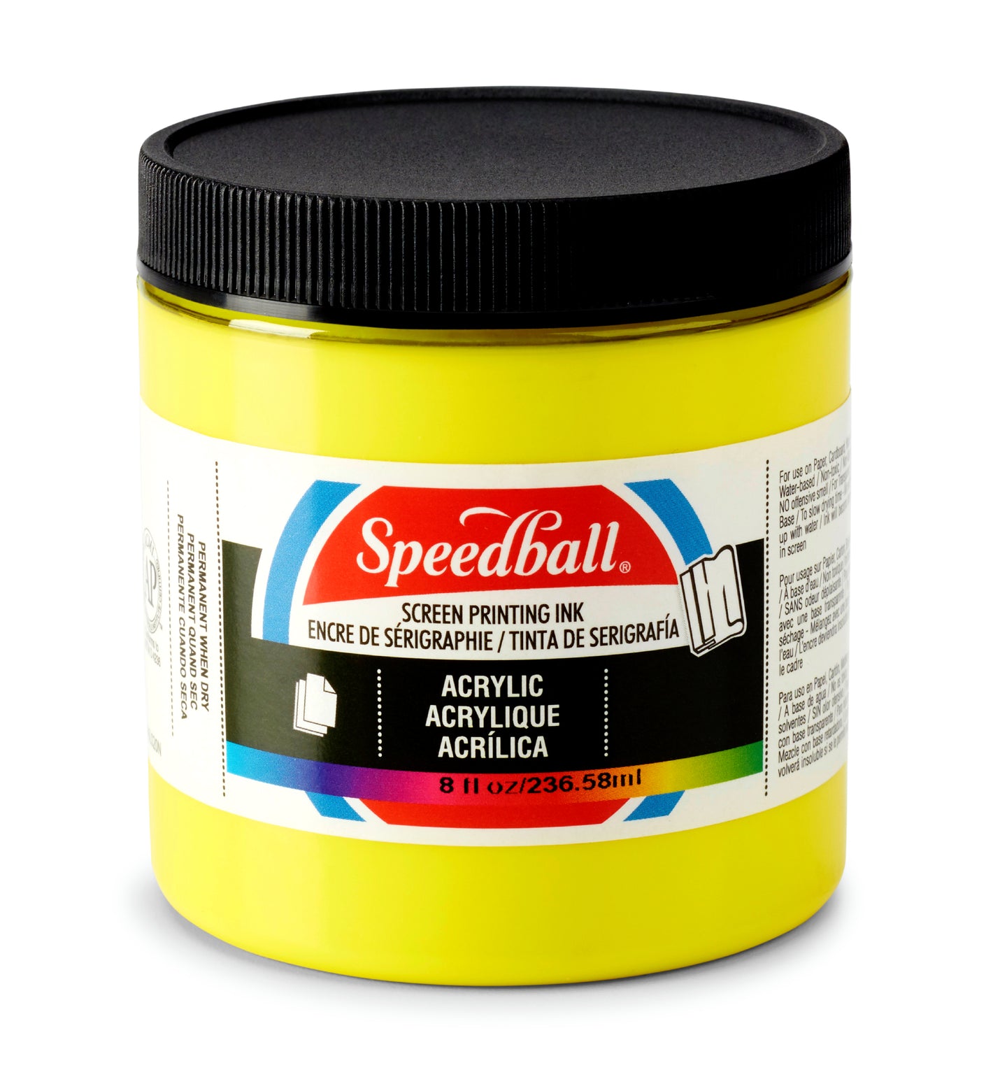 Speedball Acrylic Screen Printing Ink is the brand of choice for professional screen printers and beginner artists alike. With unrivaled open time Speedball Acrylic Screen Printing Inks provide artists with the ultimate flexibility to create without worry. Colours print with richness and are ideal for use on paper, wood, and cardboard. Non-flammable and contain no solvents. Each in colour carries the AP Seal of Approval. Ink cleans up easily with soap and water. Ink is available in a variety of 28 colours including 3 process, 2 glow-in-the-dark, and 6 vibrant fluorescent.