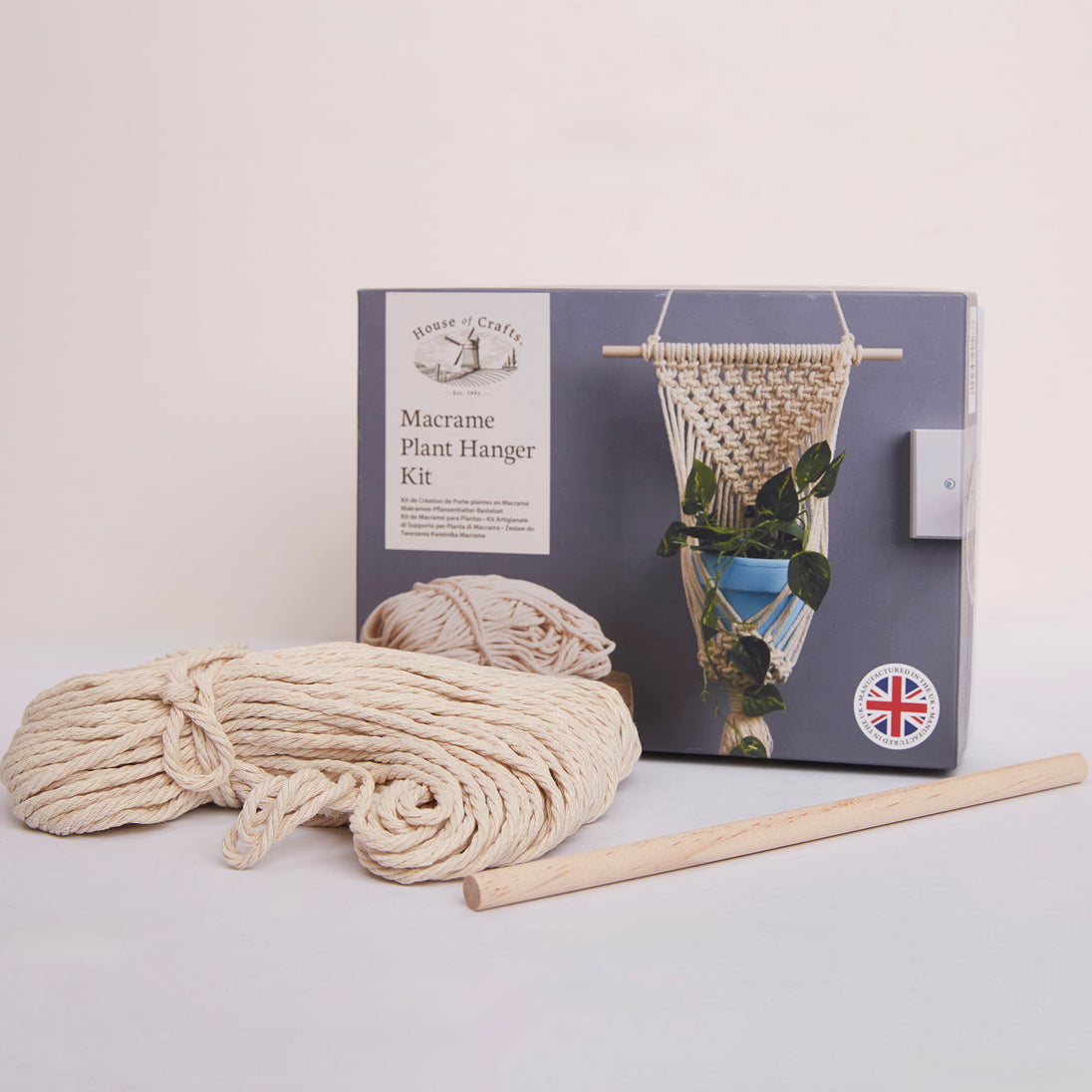 House of Crafts Macrame Plant Hanger, Beige, Single Craft Kit Set, DIY, Art And Crafts, Wax, Unique Gift