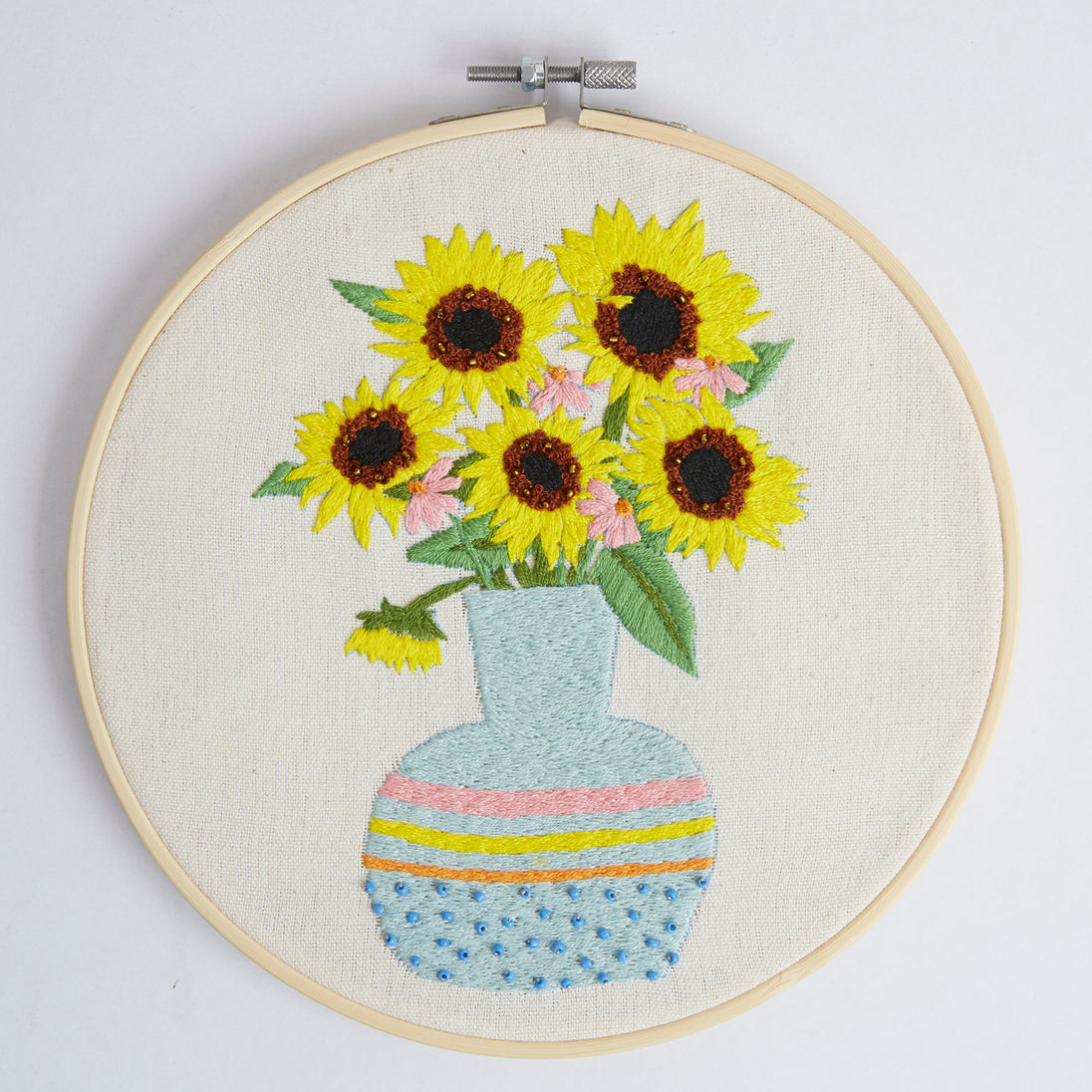Sew & So On - Hanging Embroidery Sewing Craft Kit - Sunflowers, Flower Themed, Vase, Includes Everything Needed, Craft Kits, Makes A Great Craft Art Gift, Use For Home Decor