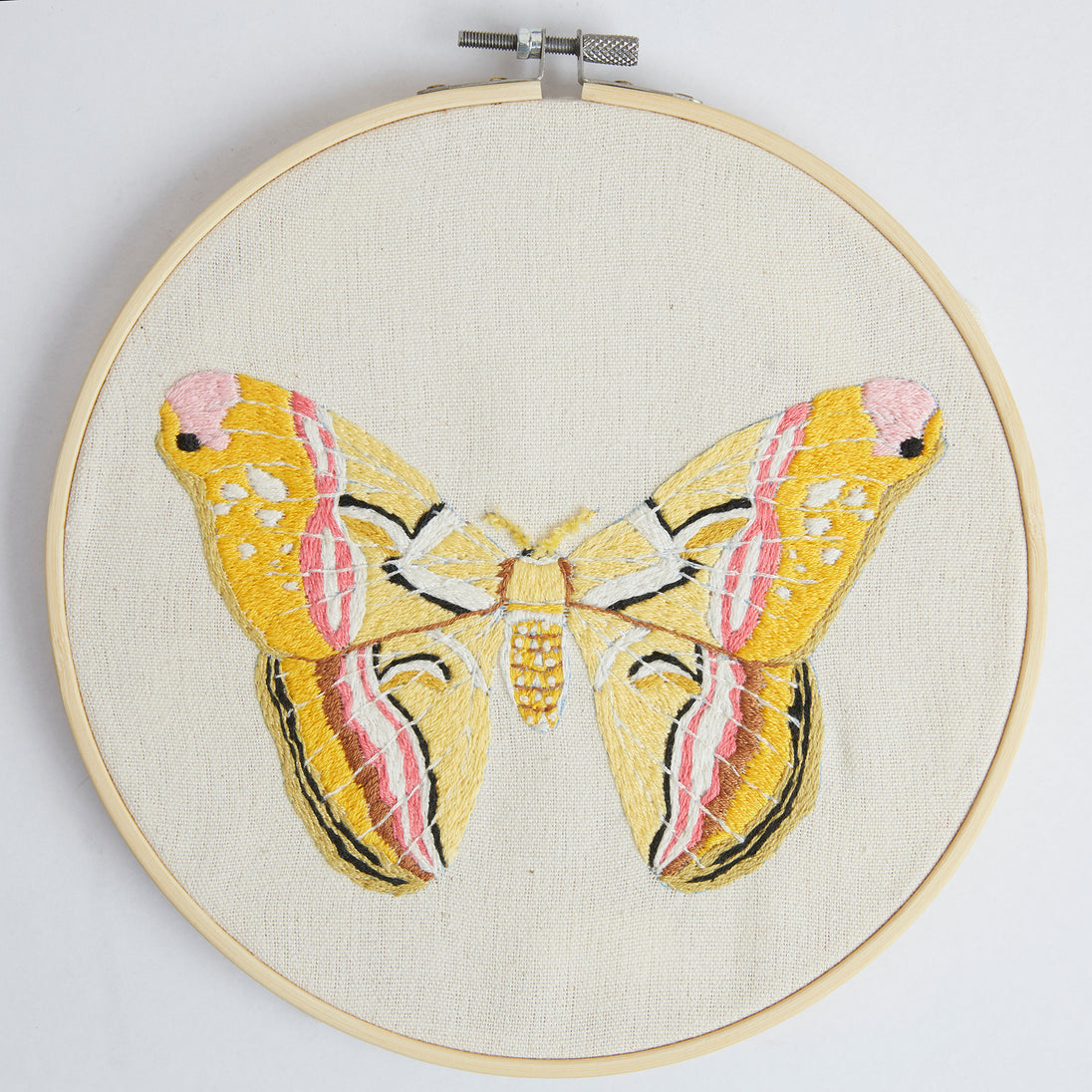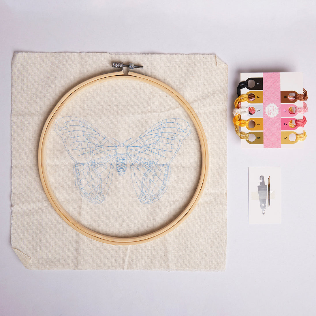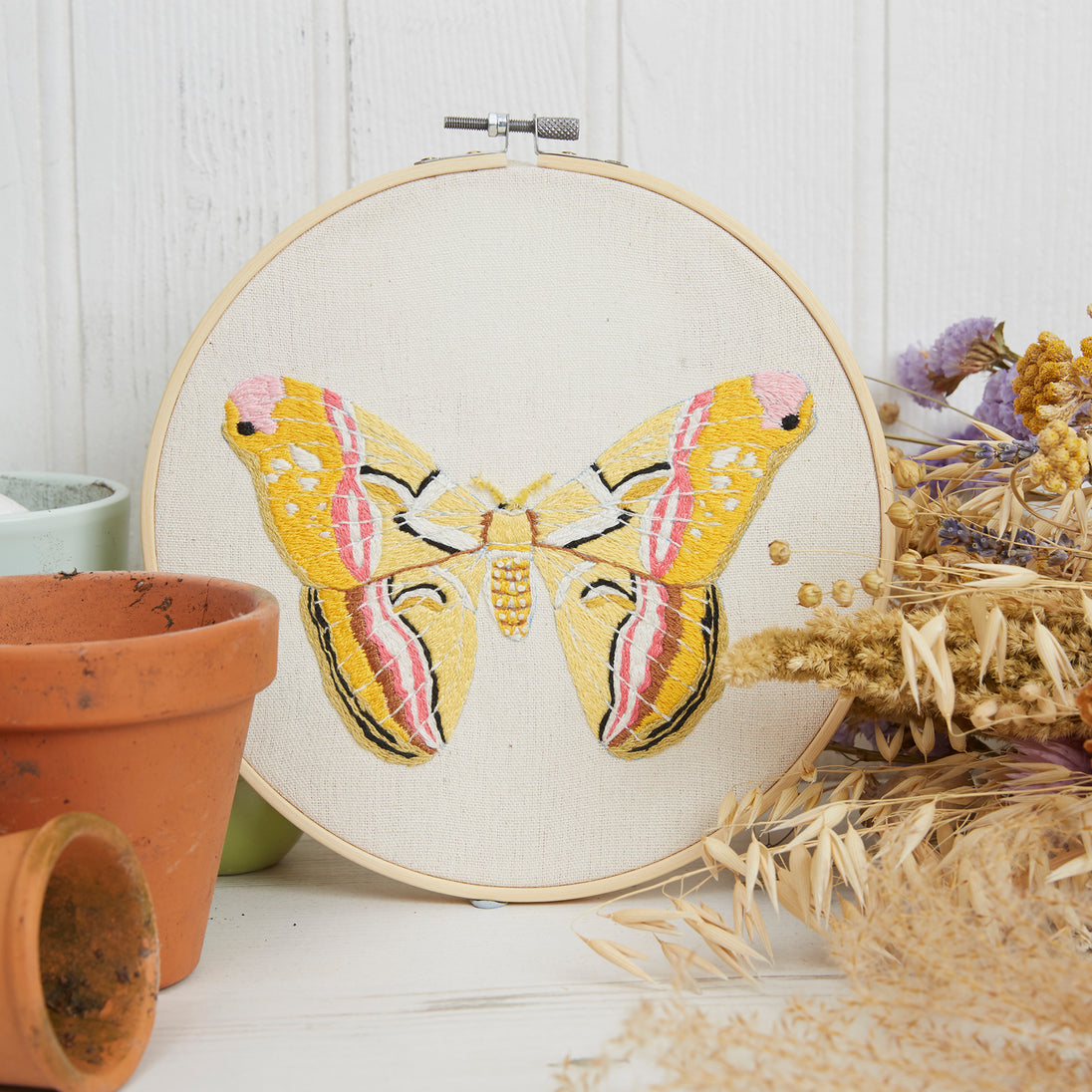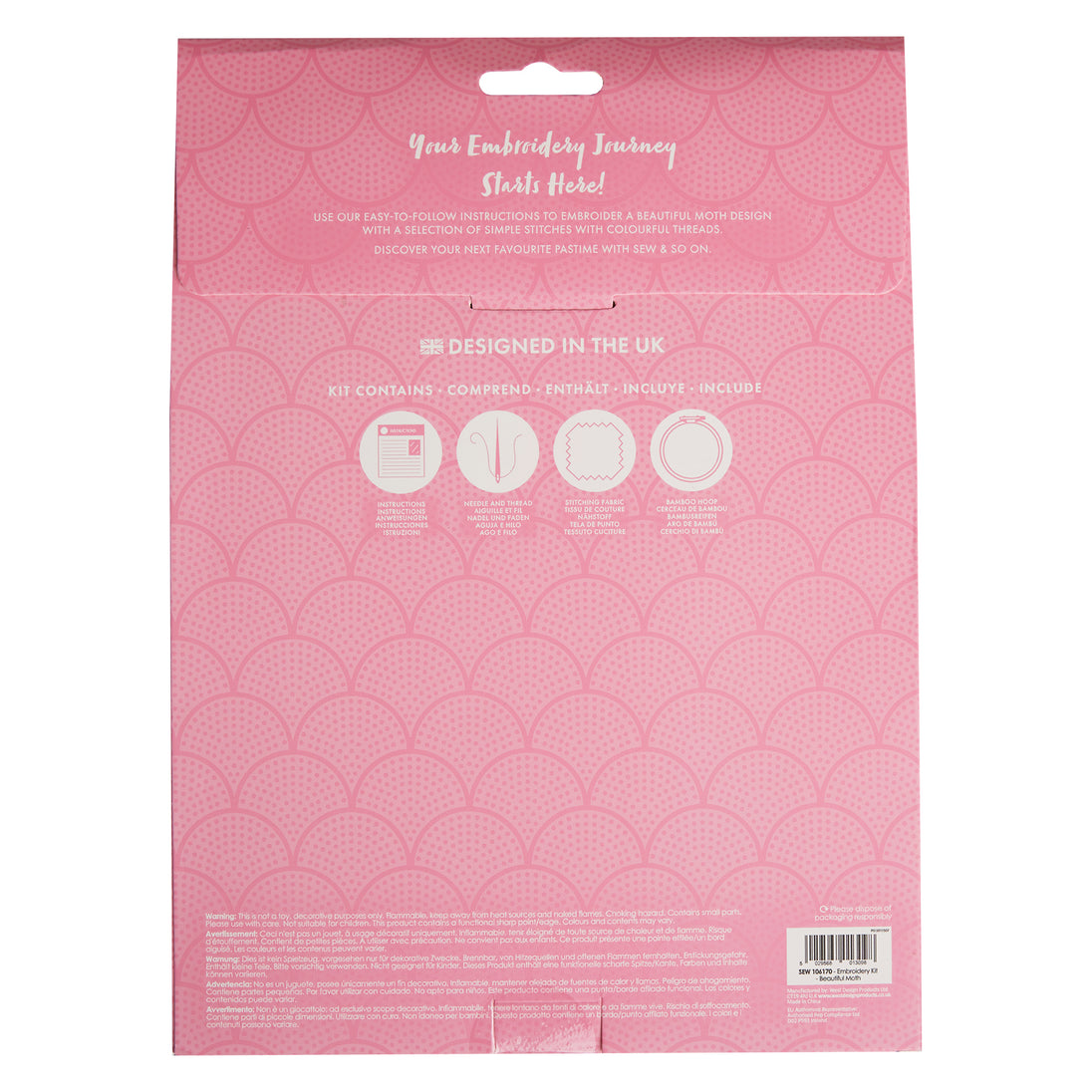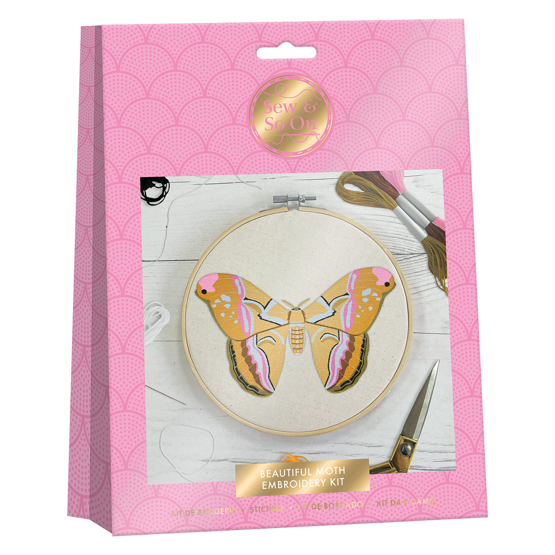 Premium Sew and So On kits are perfect for beginners or experienced sewers alike. This kit includes everything required to complete a stylish Beautiful Moth embroidery design that can be displayed in the bamboo hoop included.