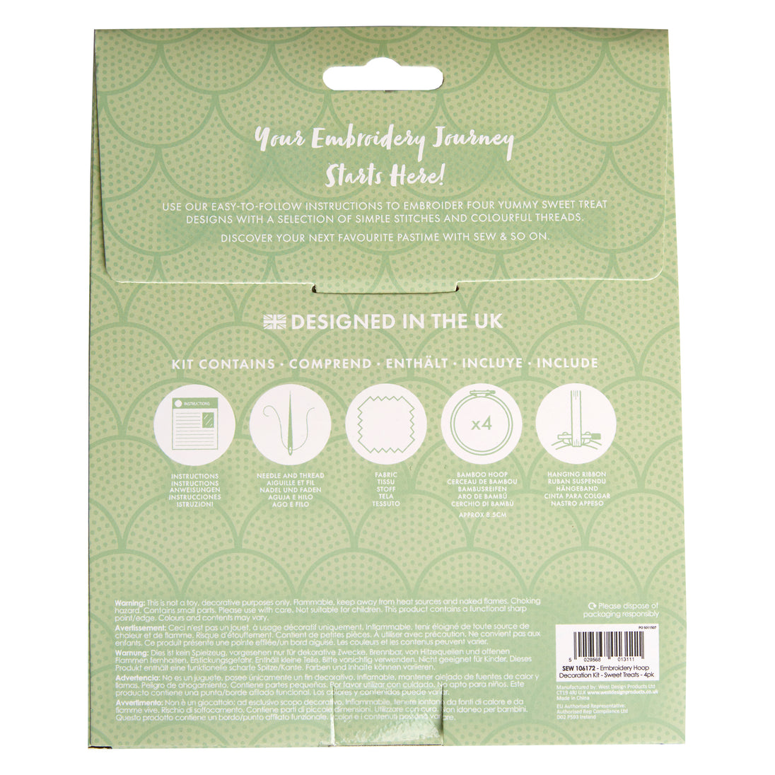 Sew & So On - Hanging Embroidery Sewing Craft Kit - Sweet Treats, Doughnut, Cake, Lolly Pop, Ice Cream, Dessert Themed, Includes Everything Needed, Craft Kits, Makes A Great Craft Art Gift