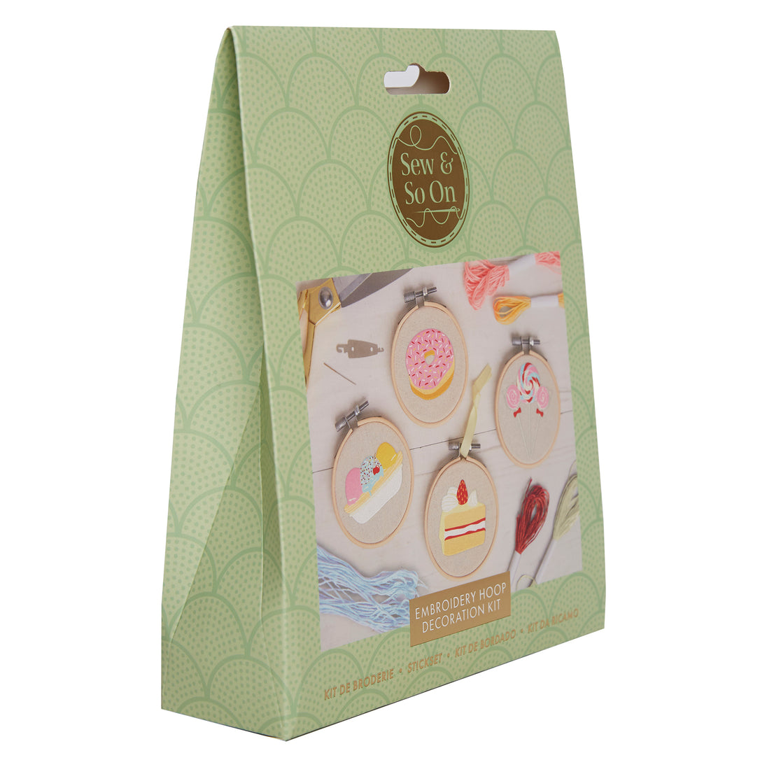 Premium Sew and So On kits are perfect for beginners or experienced sewers alike. This kit includes everything required to complete a set of 4 stylish embroidery designs in a Sweet Treats theme that you can display in the bamboo hoops included.