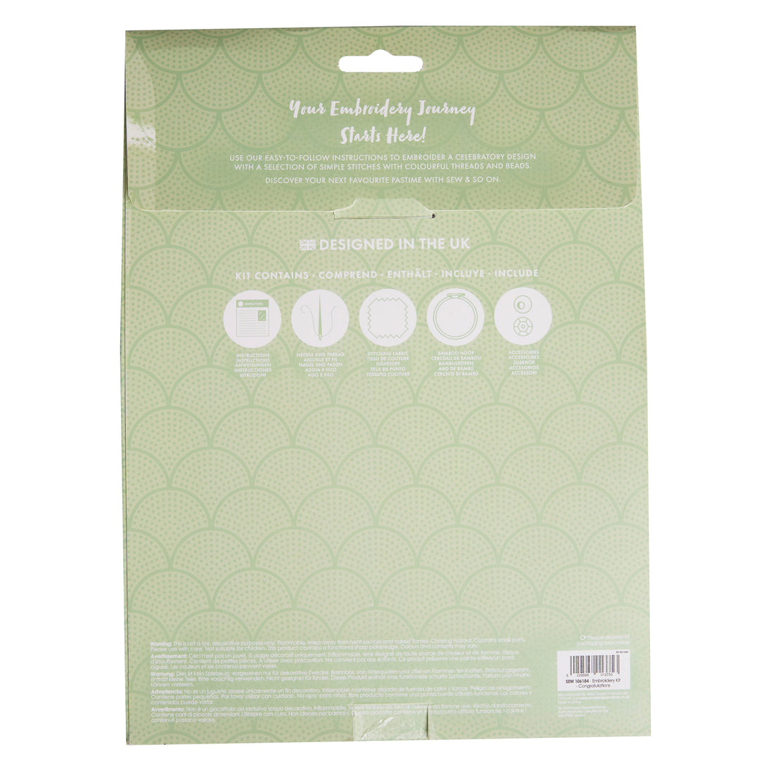 Sew & Sew On Embroidery Kit, Congratulations, Multicoloured, Single Craft Kit, Stitch and Sewing Kit that Includes Embroidery Threads, Craft Kits for Adults UK, Embroidery Kit with Embroidery Hoop