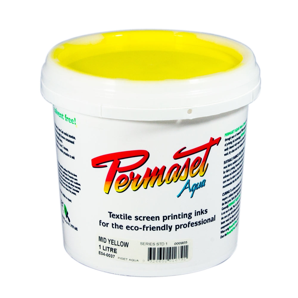 Permaset Aqua Standard 1 Litre Mid Yellow - Screen Printing Ink for Fabric - Ideal Screen Printing Kit for Home Office, Starter Kit, Fabric Paint, Screen Printer and other Fabric Ink