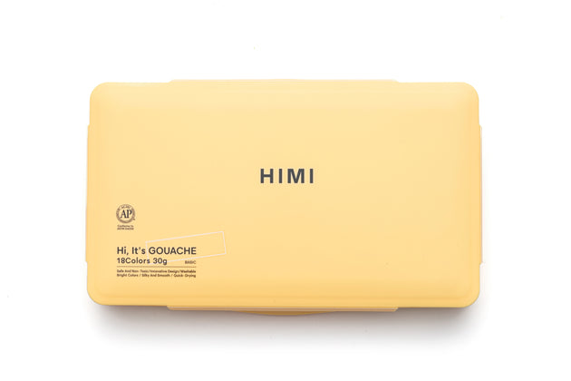 HIMI Jelly Cup Gouache Set 18 Paint Colours, 3 Brushes, Paint Pallete, Yellow Case Metallic, Add Water To Reactivate, Smooth, Rich Colours, Gift, Artist Art Supplies, Large Scale Art Work Fine Details