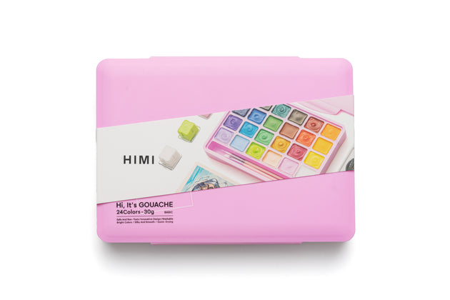 HIMI Jelly Cup Gouache Set 24 Paint Colours, Pink Case, Add Water To Reactivate, Smooth, Rich Colours, Gift, Artist Art Supplies, Large Scale Art Work To Fine Details, Ready To Use Gouache Colors