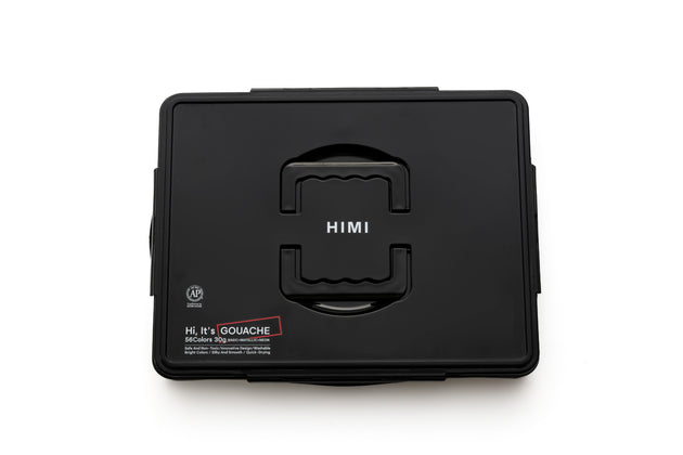 HIMI Jelly Cup Gouache Set 56 Paint Colours, Black Case, Add Water To Reactivate, Smooth, Rich Colours, Gift, Artist Art Supplies, Large Scale Art Work To Fine Details, Ready To Use Gouache Colors