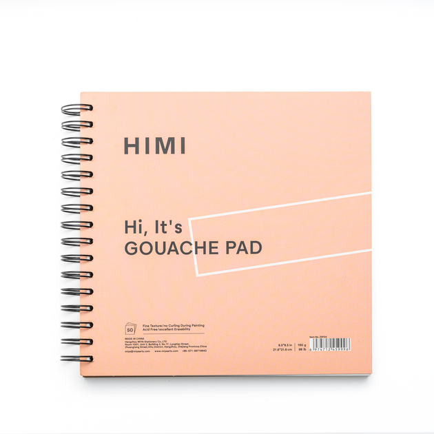 HIMI Paper Pad Gouache, 21.5 x 21.5cm (8,5x8,5") 160g, 50 Sheets, Spiral Bound Pink, White Paper, Artist Supplies, Art Paper For Painting, Grained Texture, Glued Binding Sketchbook