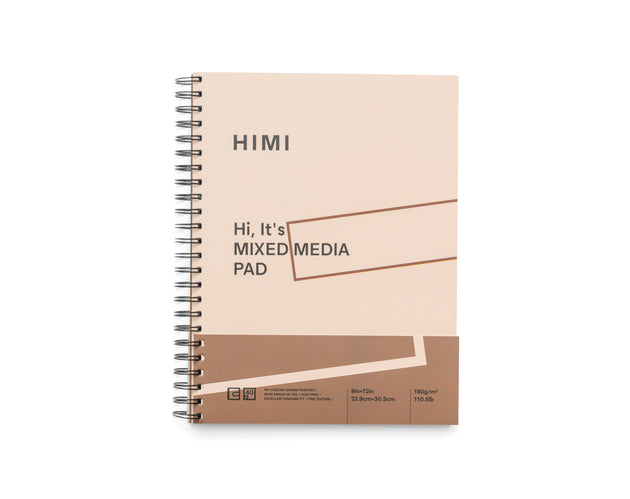 HIMI Paper Pad Mixed Media 22.9 x 30.5cm (9 x 12"), 180g, 90 Sheets, Glue Bound, White Paper, Artist Supplies, Paper For Painting, Spiral Binding Sketchbook, Pencil, Drawing, Mix Media