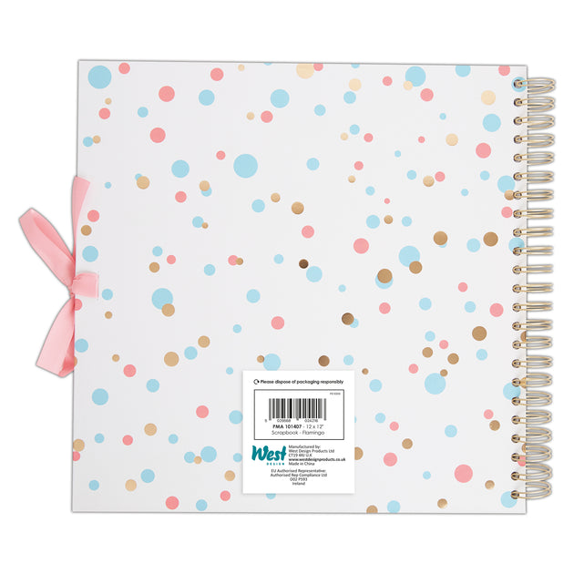 Vendor: Papermania Papermania Wiro Bound Hardback Scrapbook, 40 Pages, White Paper, Flamingo, 12" x 12", Multicoloured, With Coordinating Ribbon Closure And Wire Colours Regular price £12.99