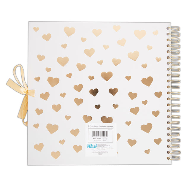 Vendor: Papermania Papermania Wiro Bound Hardback Scrapbook, 40 Pages, White Paper, Heart, 12" x 12", Multicoloured, With Coordinating Ribbon Closure And Wire Colours Regular price £12.99