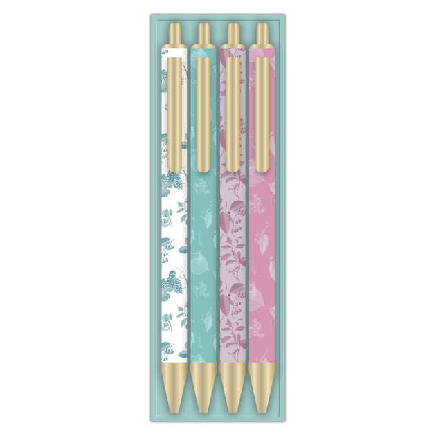 RHS The Royal Horticultural Society Ballpoint Pen Set, Chinoiserie, Pack Of 4, For Writing, Jotting, Notes, Ideas, Plans, Work, School, Office, Home Use, Perfect Gift Idea, Pastel Floral Design