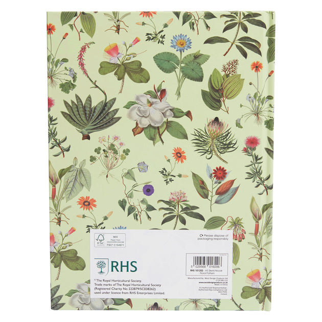 RHS The Royal Horticultural Society 160 Page Hardbound Sketchbook (110gsm), Floral Pattern, A5, Multicoloured, For Sketching, Drawing, Scrapbooking, Notes, Ideas, Painting, Acrylic, Watercolour