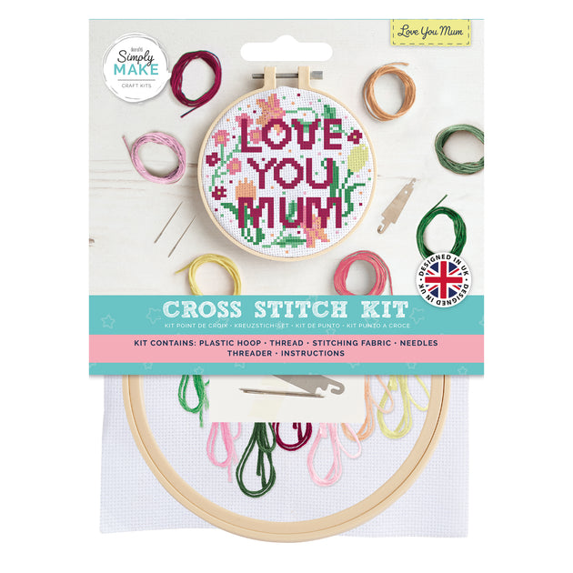 Simply Make Cross Stitch Kit, Love You Mum, Multicoloured, Single Craft Kit