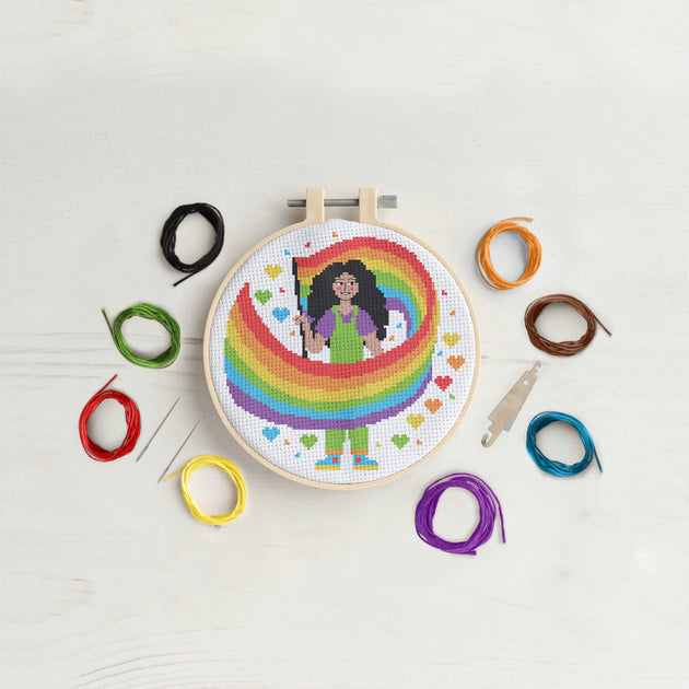 Simply Make Cross Stitch Kit, Love Pride, Multicoloured, Single Craft Kit