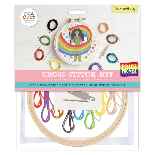 Simply Make Cross Stitch Kit, Pride Flag, Multicoloured, Single Craft Kit