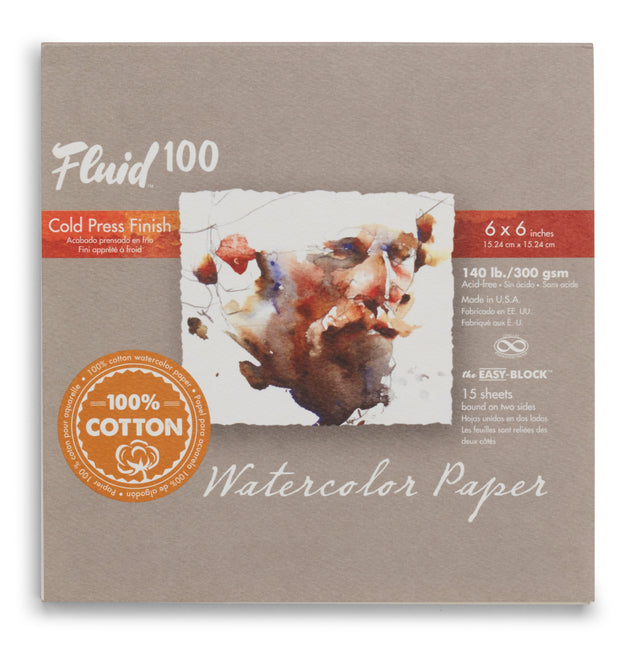 Speedball Fluid 100 Cold Press Watercolour Paper Block, White, 6 x 6inch