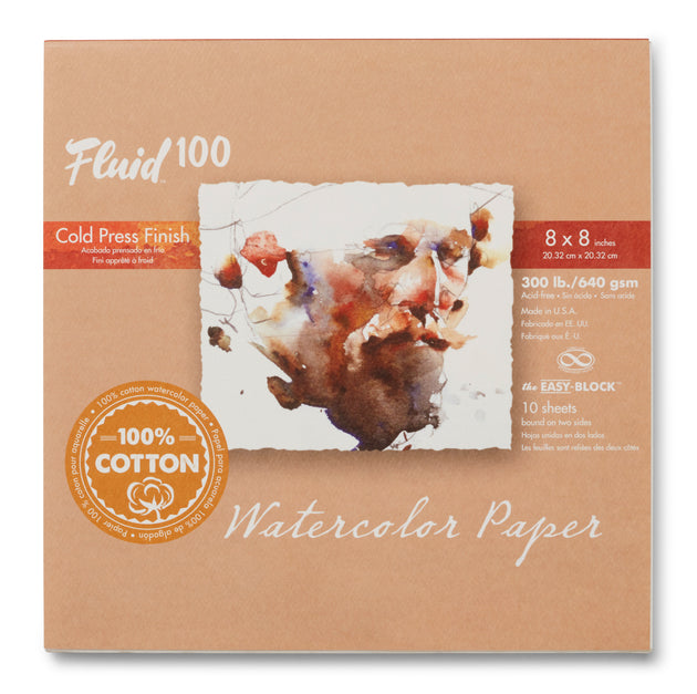 Speedball Fluid 100 Cold Press Watercolour Paper Block, White, 8 x 8inch