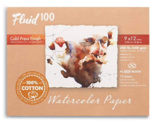 Speedball Fluid 100 Cold Press Watercolour Paper Block, White, 9 X 12inch