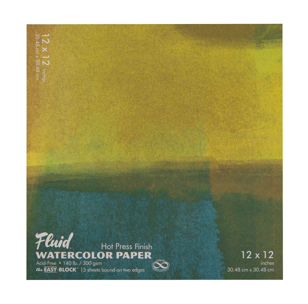Speedball Fluid Hot Press Watercolour Paper Block, White, 12 x 12inch