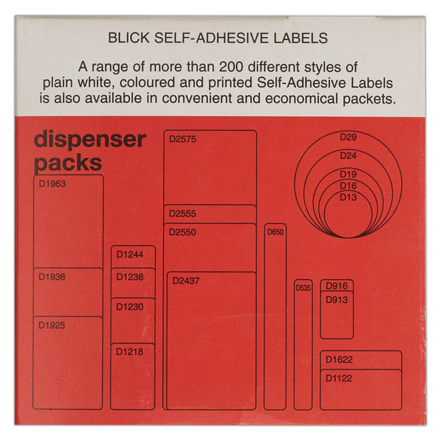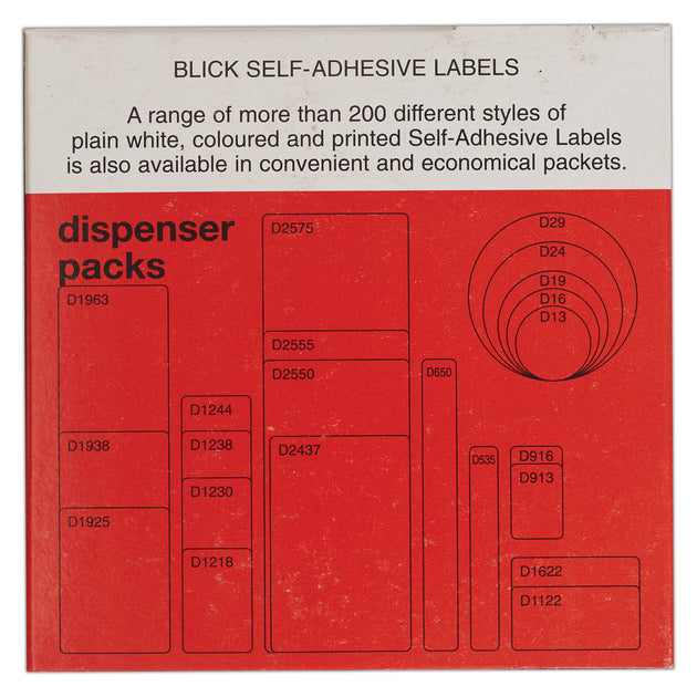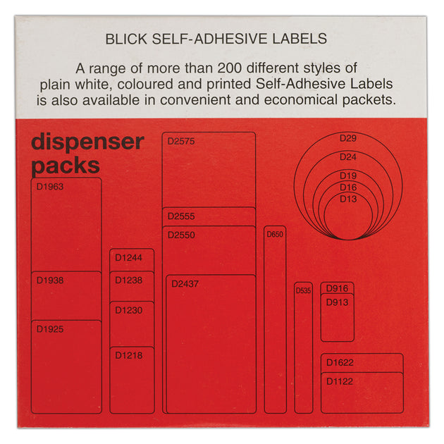 Blick Self Adhesive Stickers Dispenser Pack, 16mm x 22mm, Rectangular, Red, 1440 Labels