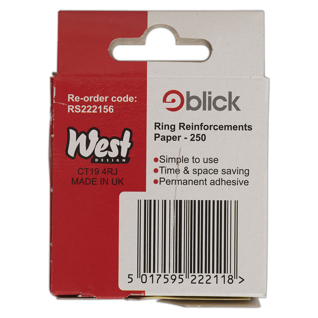 Blick Reinforcement Rings Vinyl, Circular, White, 250 Labels