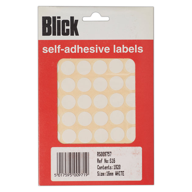 Blick Self Adhesive Stickers Warehouse Pack, 16mm, Rectangular, White, 1920 Labels