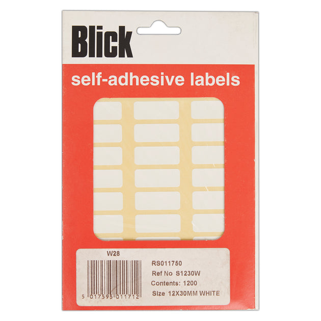 Blick Self Adhesive Stickers Warehouse Pack, 12mm x 30mm, Rectangular, White, 1200 Labels