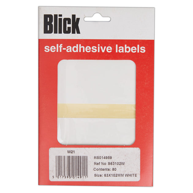 Blick Self Adhesive Stickers Office Pack, 63mm x 102mm, Rectangular, White, 80 Labels