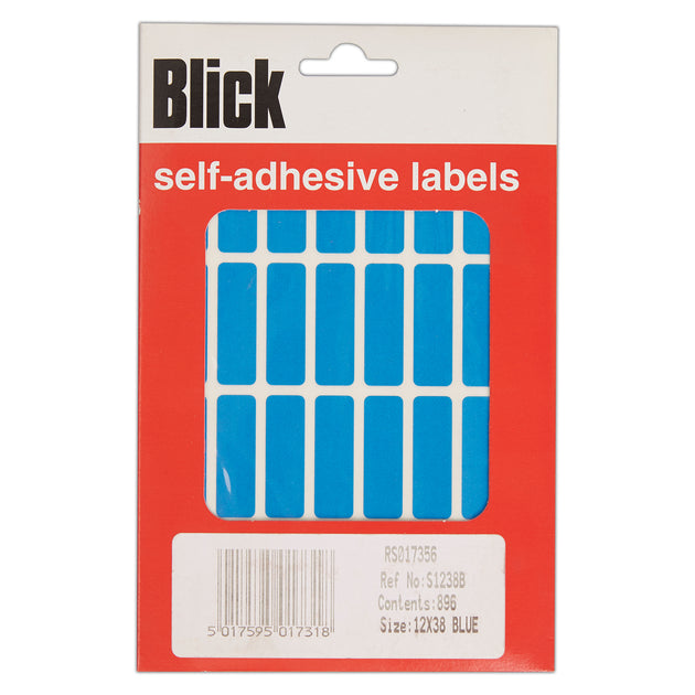 Blick Self Adhesive Stickers, 12mm x 38mm, Rectangular, Blue, 896 Labels