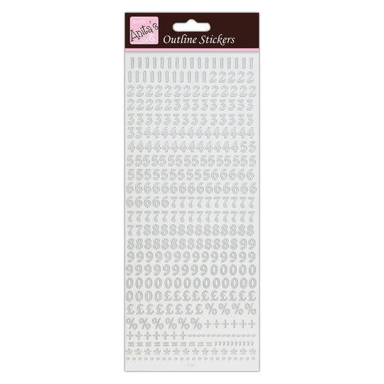 Anita's Outline Stickers, Small Numbers, Silver on White, For Scrapbooking, Card Making, Kids Play, Homework, Art, Craft, Embelish, Decorative, Paper, Card, Glass, Metal, Plastic, Foam