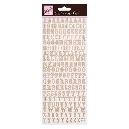 Anita's Outline Stickers, Traditional Alphabet, Rose Gold on White, For Scrapbooking, Card Making, Kids Play, Homework, Art, Craft, Embelish, Decorative, Paper, Card, Glass, Metal, Plastic, Foam