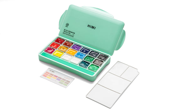 18 vibrant colours in a green case, opaque gouache paints ready for beginners and creative explorers alike. Paint without pressure. The HIMI Jelly Cup Gouache Set brings together 18 rich colours that stay bright and matte,...Regular price £24.99 -