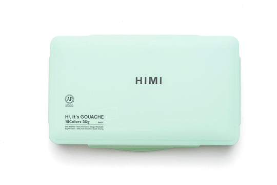 HIMI Jelly Cup Gouache Set 18 Paint Colours, Green Case, Add Water To Reactivate, Smooth, Rich Colours, Gift, Artist Art Supplies, Large Scale Art Work To Fine Details, Ready To Use Gouache Colors