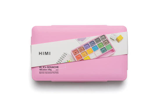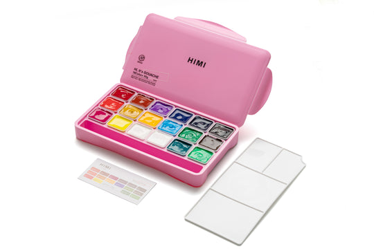 HIMI Jelly Cup Gouache Set 18 Paint Colours, Pink Case, Add Water To Reactivate, Smooth, Rich Colours, Gift, Artist Art Supplies, Large Scale Art Work To Fine Details, Ready To Use Gouache Colors
