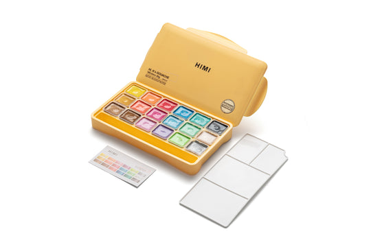 18 shimmering metallic colours in a yellow case, smooth opaque gouache paints that add shine and depth to your creative work. Paint with a spark. The HIMI Jelly Cup Gouache Set – Metallic Edition includes 18...Regular price £27.99 -