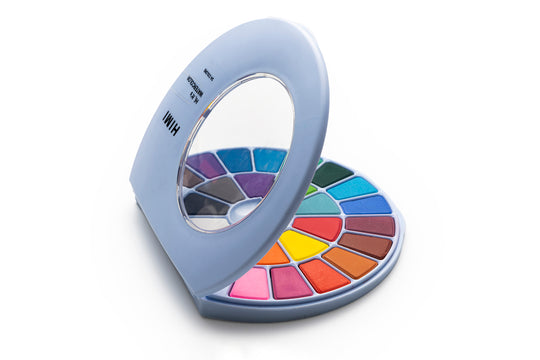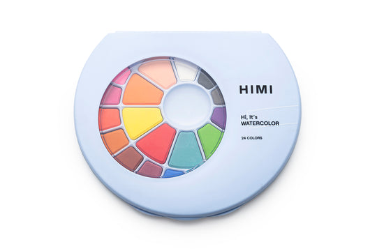 HIMI Solid Watercolour Set 24 Colours In Pans, Brush, Blue Case, Opens Like Makeup Palette, School Art, Teen Sketching, Bold Experiments, Watercolor Supplies Kit, Portable, Beginner Hobby, Gift