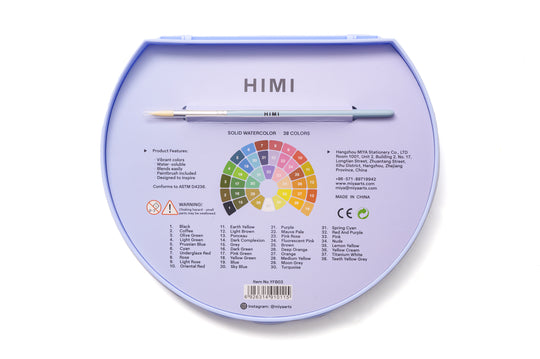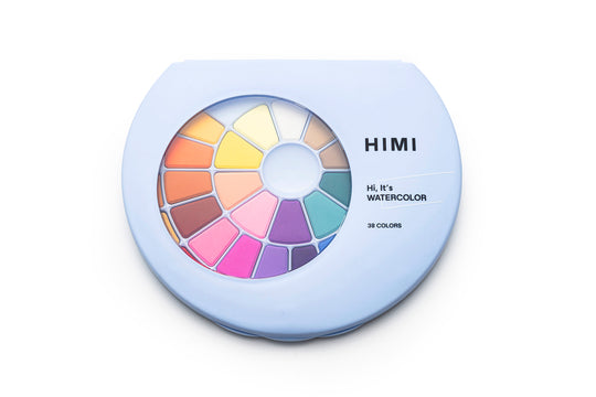 HIMI Solid Watercolour Set 38 Colours In Pans, Brush, Blue Case, Opens Like Makeup Palette, School Art, Teen Sketching, Bold Experiments, Watercolor Supplies Kit, Portable, Beginner Hobby, Gift