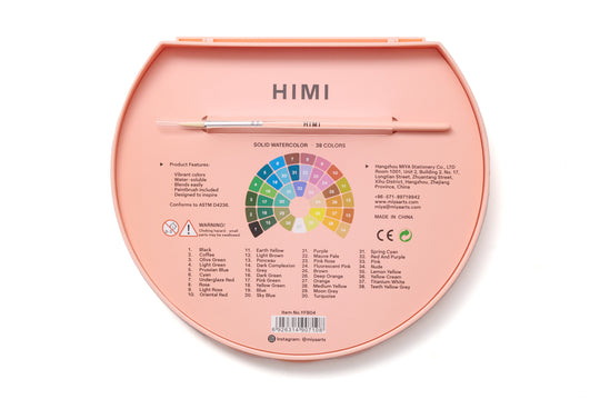 HIMI Solid Watercolour Set 38 Colours In Pans, Brush, Pink Case, Opens Like Makeup Palette, School Art, Teen Sketching, Bold Experiments, Watercolor Supplies Kit, Portable, Beginner Hobby, Gift