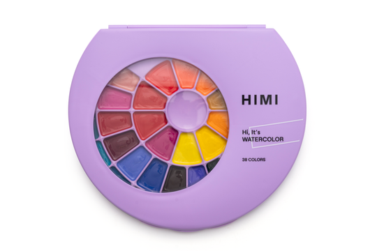 HIMI Semi-Moist Watercolour Set, 38 Colours In Pans, Brush, Purple Case Edition, Softer Than Dry, Wake Up With Splash Of Water, Easy To Mix, Paint Brush, Art Set Supplies, Gift, Beginner