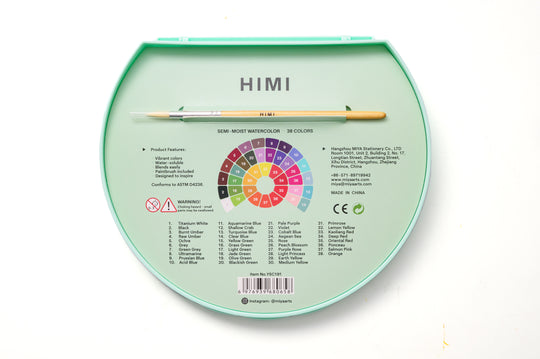 HIMI Semi-Moist Watercolour Set, 38 Colours In Pans, Brush, Green Case Edition, Softer Than Dry, Wake Up With Splash Of Water, Easy To Mix, Paint Brush, Art Set Supplies, Gift, Beginner