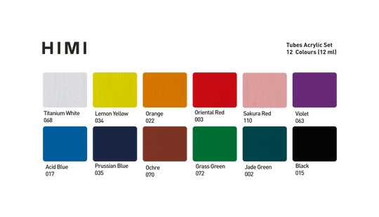 HIMI Tube Acrylic Set, 12 Colours 12 ml, Compact Acrylic Paint Set, Beginners Set, Artist Supplies, For Everyday Art, Glossy Colours, Painting With Acrylics Paint Set, Compact Paint Tubes