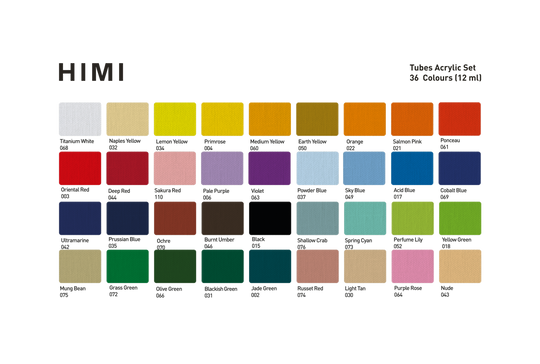 HIMI Tube Acrylic Set, 36 Colours 12 ml, Compact Acrylic Paint Set, Beginners Set, Artist Supplies, For Everyday Art, Glossy Colours, Painting With Acrylics Paint Set, Compact Paint Tubes